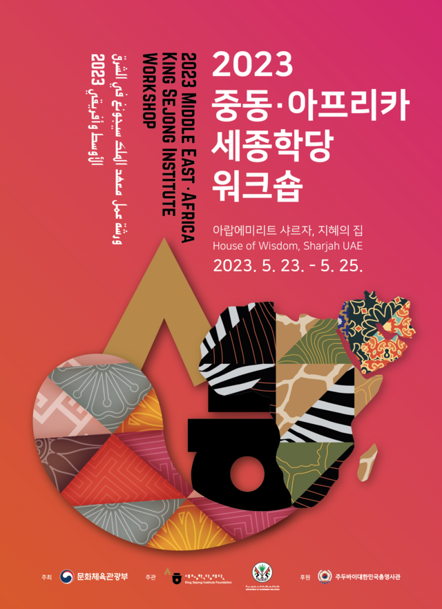 문화체육관광부는 세종학당재단과 함께 5월 23일(화)부터 25일(목)까지 아랍에미리트 샤르자 지혜의 집(House of Wisdom)에서 ‘2023 중동·아프리카 세종학당 워크숍’을 개최한다.