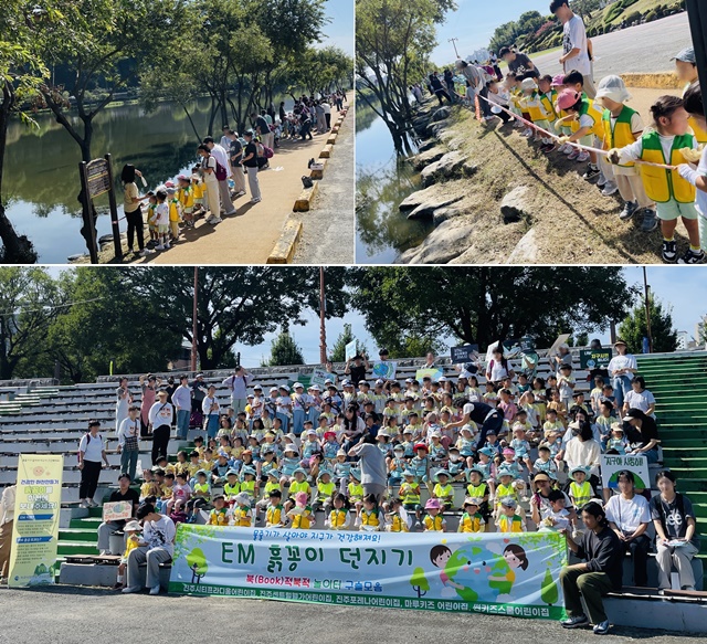 경남 최초 공유형 어린이집 ‘진주시 구슬모음어린이집’ 전체 원아 1,000여 명이 참여한 ‘EM흙공 던지기 릴레이 캠페인 행사’는 지구시민연합 경남지부(대표 하태현)가 함께했다.