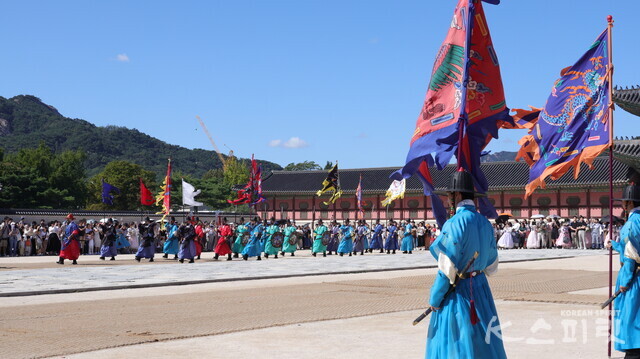 푸른 가을하늘 아래 조선의 법궁, 경복궁에서 지난 29일 오후 2시 수문장 교대의식이 진행되었다. 영국 버킹엄궁을 지키는 왕실 근위병이 있다면 대한민국 수도 서울에는 경복궁과 덕수궁, 창덕궁을 지키는 수문장과 수문군이 있다.