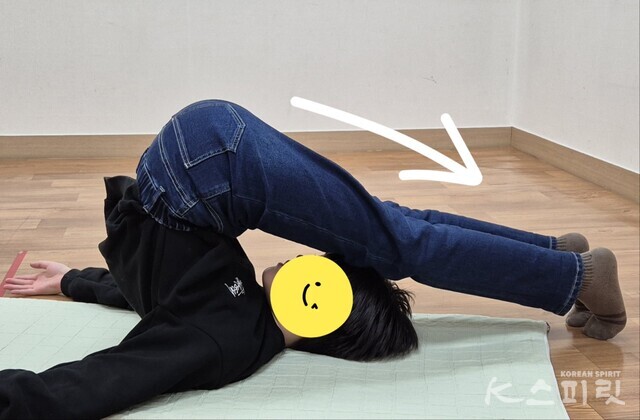 찬영이의 오금이 펴진 것이 관찰됩니다.