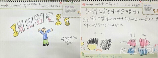 찬영이는 신체와 정서지능을 키우는 수업과 함께 주도적인 학습능력을 키우는 뇌기반 학습수업도 진행했습니다.