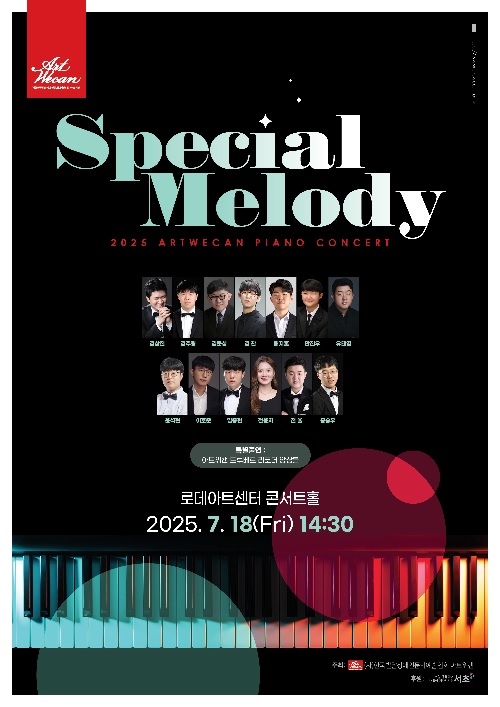 한국발달장애인문화예술협회 아트위캔은 2025년 서울 서초구 사회복지기금 공모사업으로 2025 아트위캔 피아노콘서트 '스페셜 멜로디(Special Melody)'를 오는 7월 18일 오후 2시 30분 서울시 서초구에 있는 로데아트센터 콘서트홀에서 개최한다.