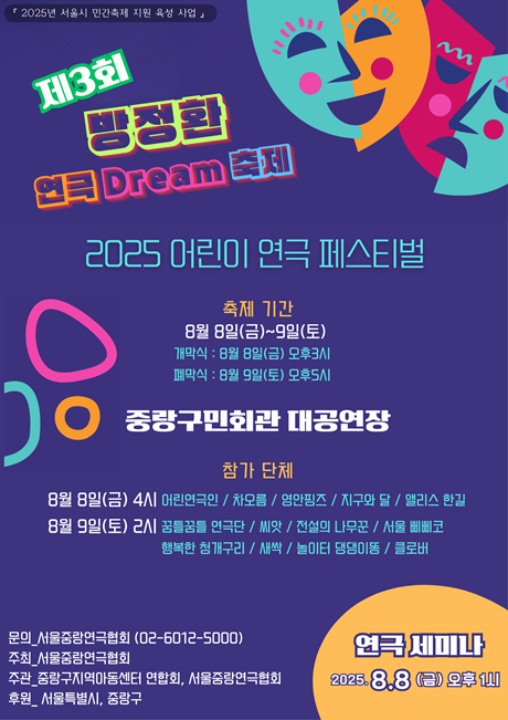 어린이가 배역을 맡아 공연에 출연하는 참여형 연극 축제로 올해는 어린이 출연팀 13개팀이 공연한다. 중랑구 소재 초등학생이 참여하는 다양한 연극 작품들을 만날 수 있다.