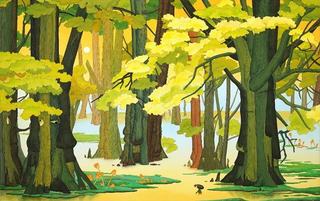 그러나 전통 산수화에서 주인공은 어디까지나 자연이며, 인간이 중심이 아니다. 윤송아는 작은 소년의 꿈과 소망을 중심으로 서사를 전개하며, 인간 중심의 시선을 작품에 담아낸다. 장지 위에 분채로 그린 동양화적 배경 속에서 살아나는 인간 중심의 이야기는 동서양의 경계를 허물며, 작가만의 독자적인 세계를 구축한다.