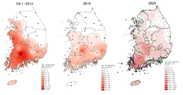 또한 털진드기는 평균기온 20℃ 미만에서 발생이 증가하기 시작해 10-15℃에서 왕성한 활동을 보이다가, 10℃ 미만으로 떨어질 때부터 감소하는 경향을 보인다. 2025년 43주차에 평균기온 15.9℃로 떨어짐으로써 털진드기의 발생이 증가하는 양상을 확인했다.