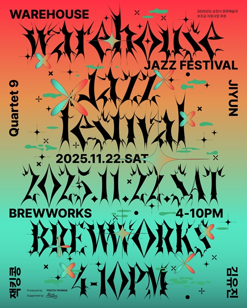 청년문화예술단체 청춘연가가 11월 22일 전남 순천 복합문화공간 브루웍스에서 재즈 페스티벌 ‘Warehouse Jazz Festival 2025’를 개최한다. 이 페스티벌은 도심 속 공간을 무대로 재해석하고, 지역의 새로운 음악 문화를 제시하는 도시형 재즈로젝 프트다.